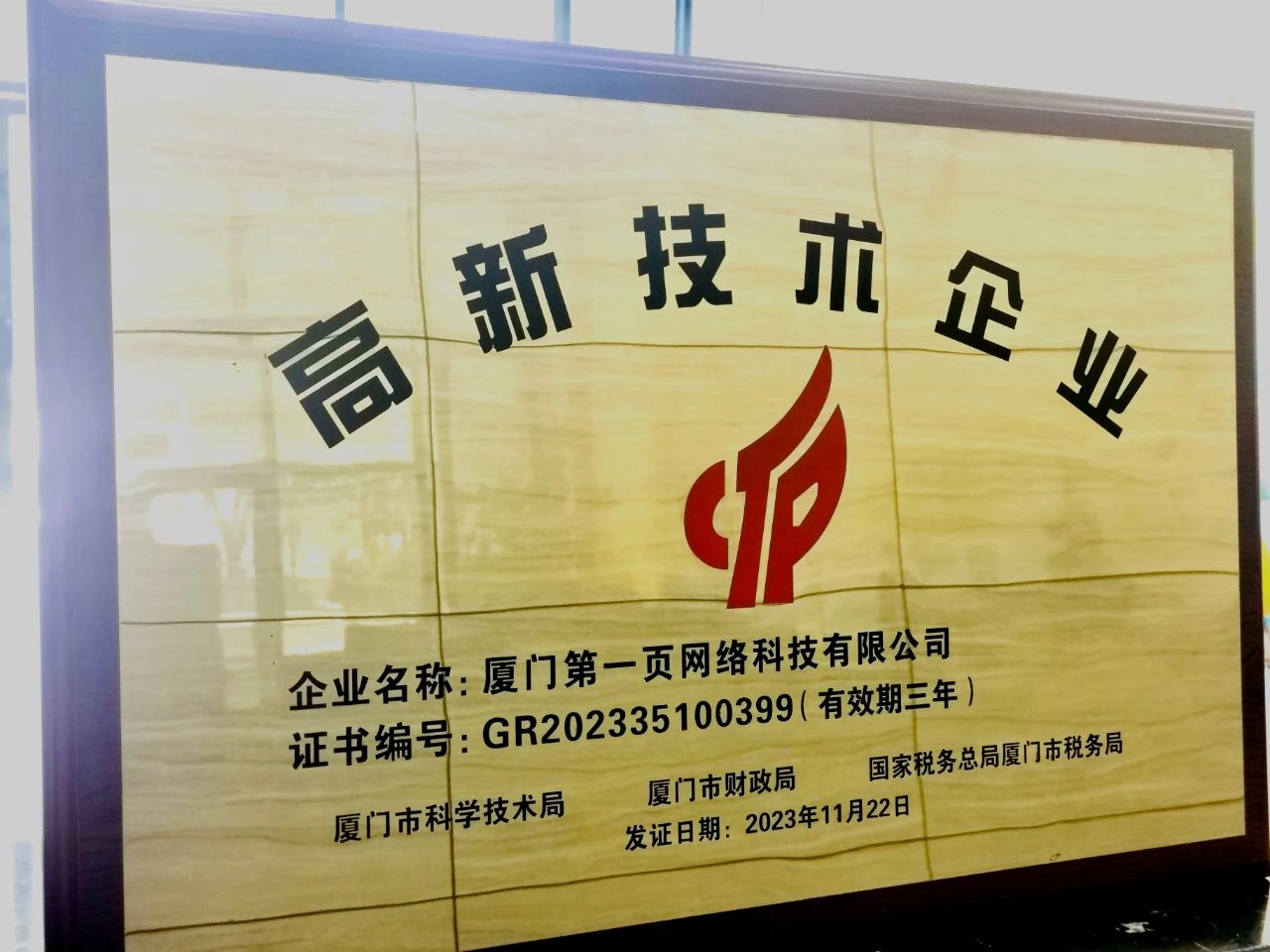 第一頁網(wǎng)絡(luò)科技有限公司再次榮獲國家高新技術(shù)企業(yè)認(rèn)證,更好地助力中國企業(yè)品牌出海!